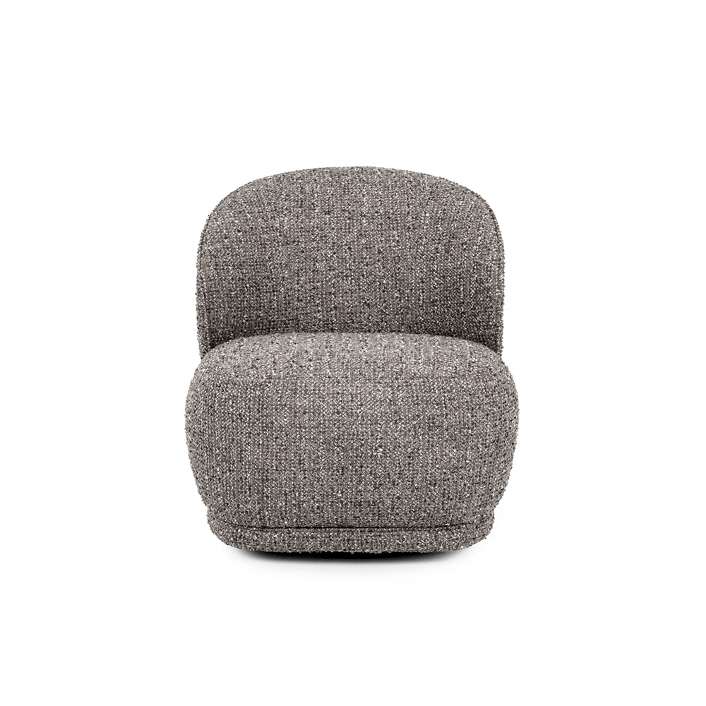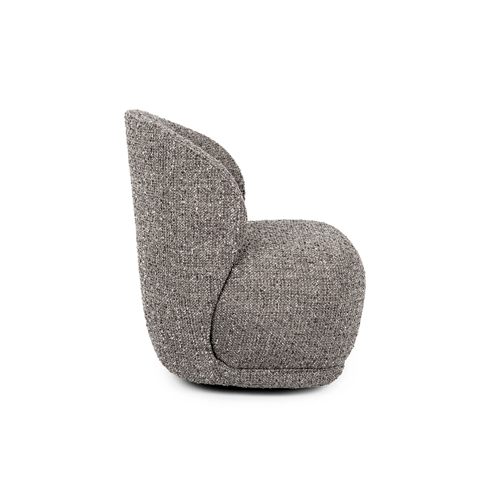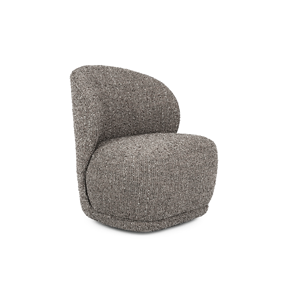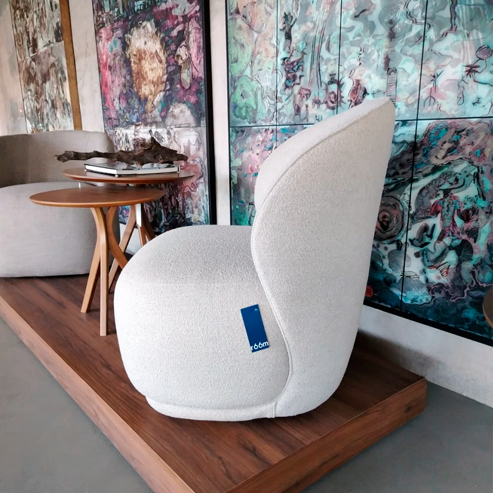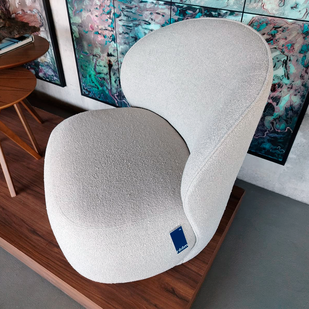 Estructura en madera. Relleno en poliuretano inyectado densidad 23. Base fija en metal electropintado. Tapiz tela color gris claro bucle C3191